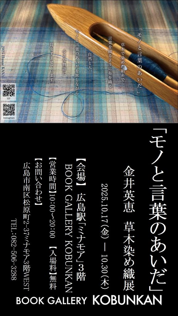 植物染料で絹糸を染め、着物やタペストリーを制作されておられます。自然のものでとても繊細な作品をこのたびBOOK GALLERY KOBUNKANへお持ちいただき、展示・販売を行っていただきます。