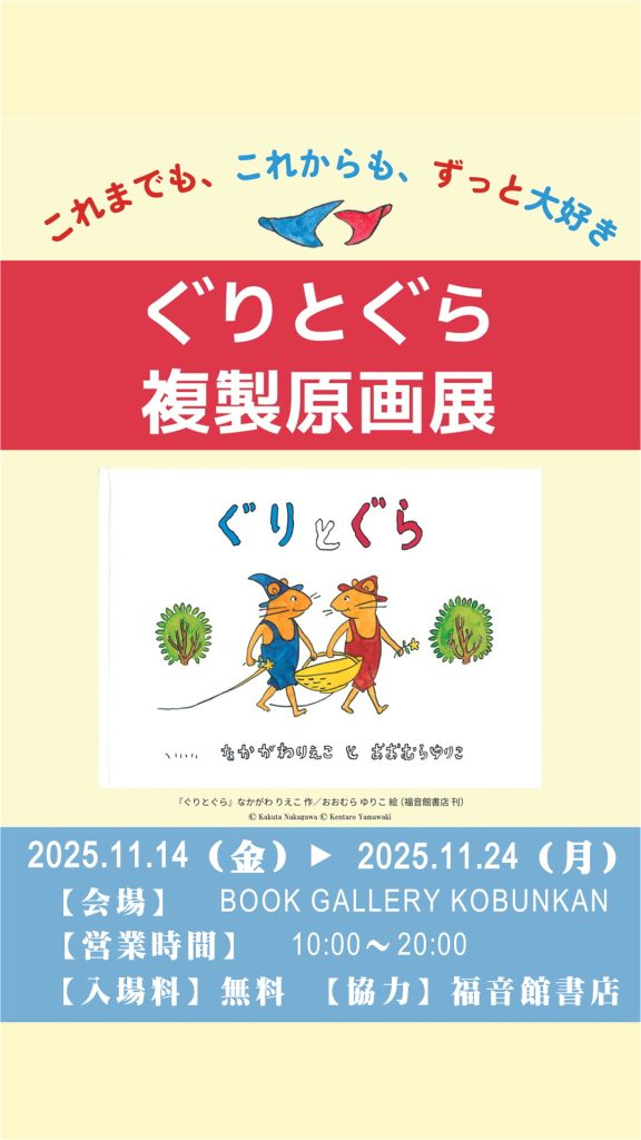 福音館書店のロングセラー絵本「ぐりとぐら」の複製原画展をBOOK GALLERY KOBUNKANにて開催いたします。
